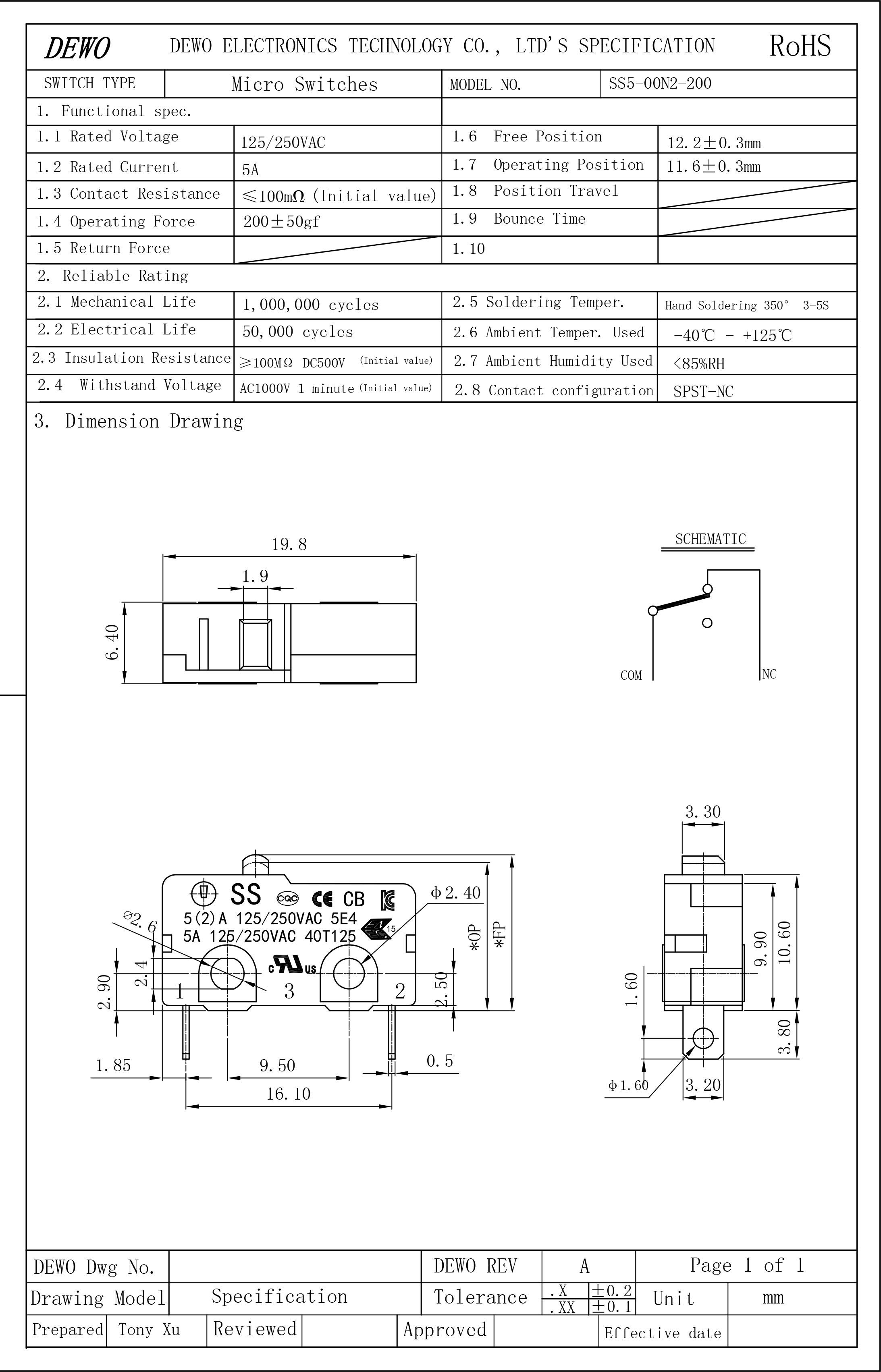 SS5-00N2-200微動(dòng)開(kāi)關(guān)
