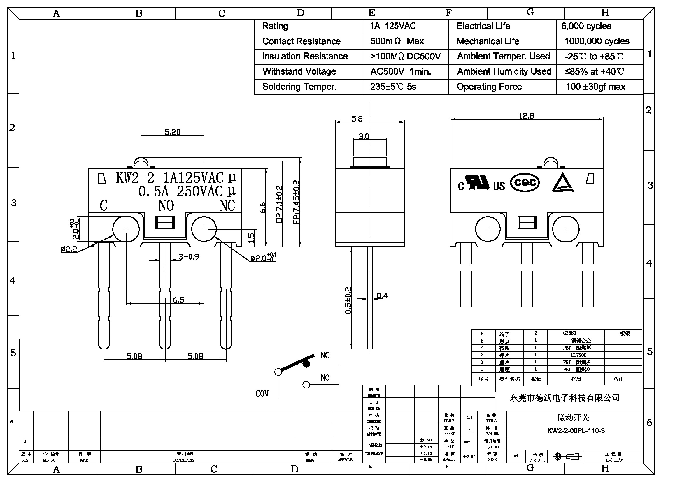 2.觸點(diǎn)材質(zhì):銀鎳合金.