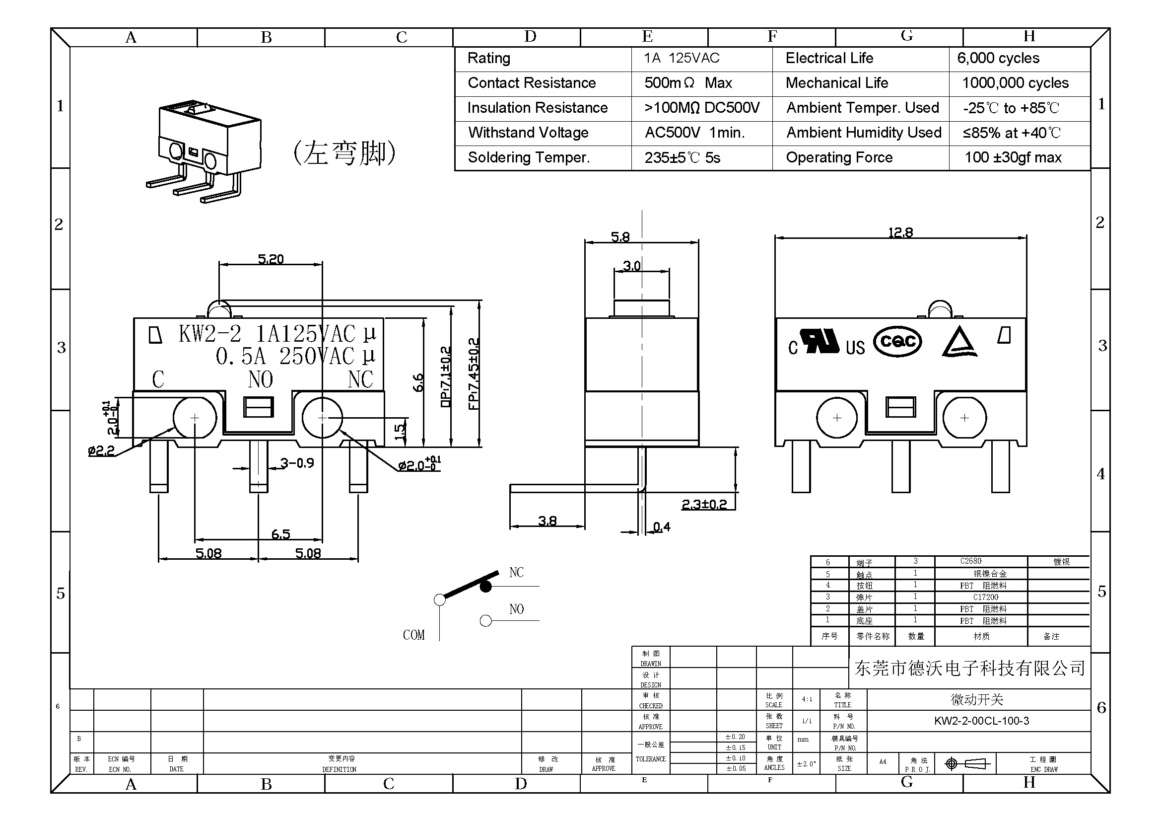 KW2-2-00CL-110-3小型微動(dòng)開(kāi)關(guān):